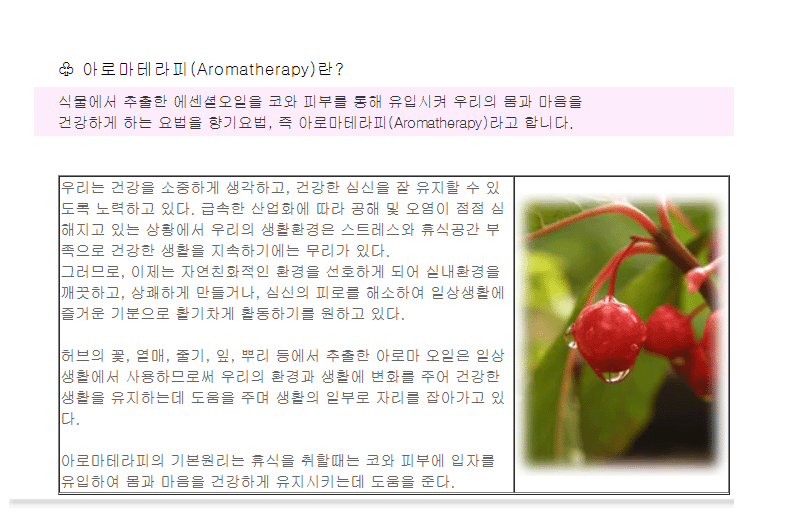 아로마테라피에 대한 정보입니다.