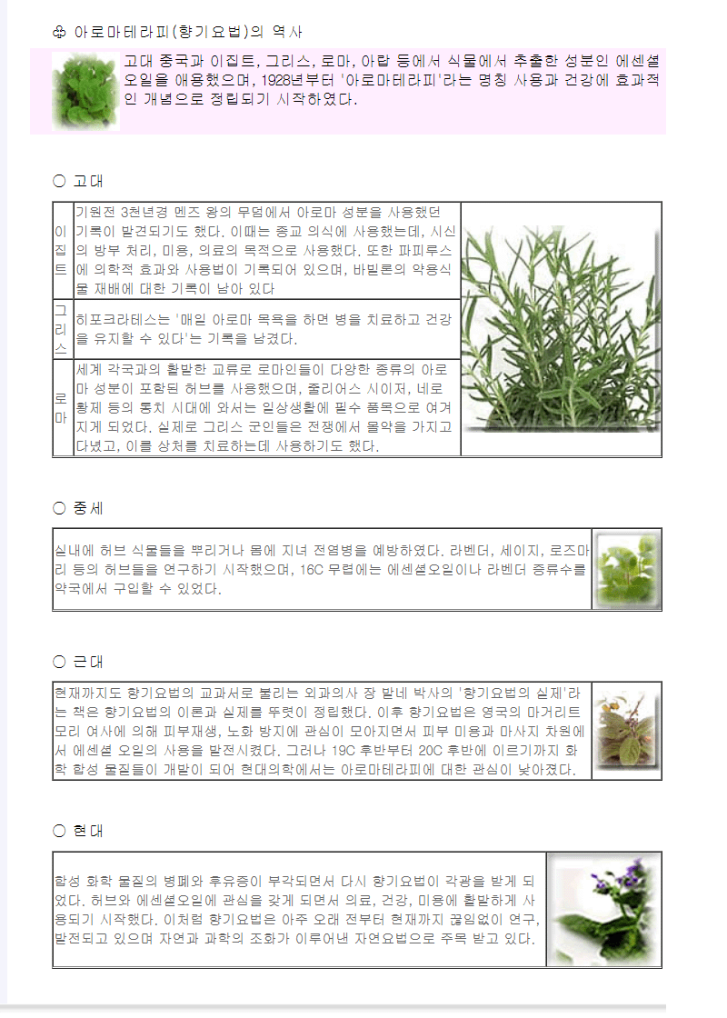 아로마테라피(향기요법)의 역사