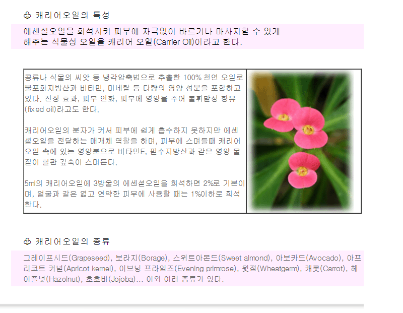 캐리어오일에 대한 정보입니다.